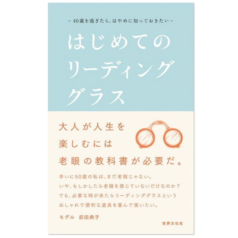 「はじめてのリーディンググラス」は、老眼への不安を解消し、ライフスタイルを楽しむための「老眼の教科書」です。老眼初心者の方にとっての、やさしい教科書となるよう、流行に左右されない普遍的な内容を一冊にまとめました。