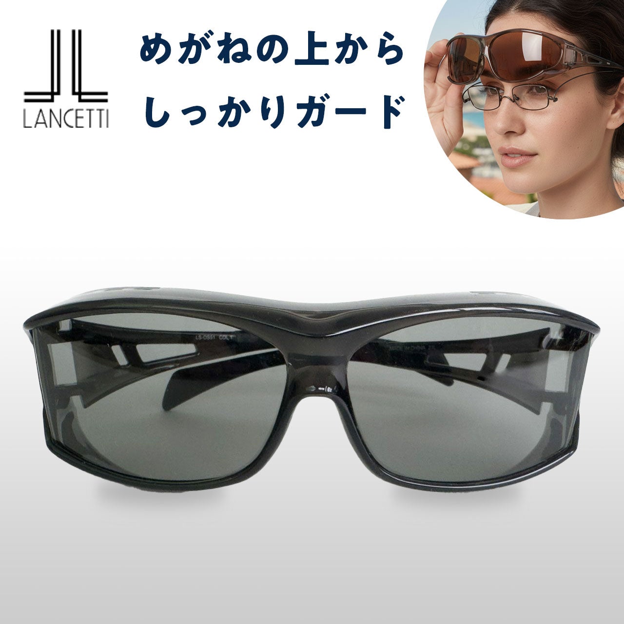 おしゃれなオーバーサングラス 偏光サングラス 偏光オーバーサングラス(グレー)(LS-OS51-1-33)