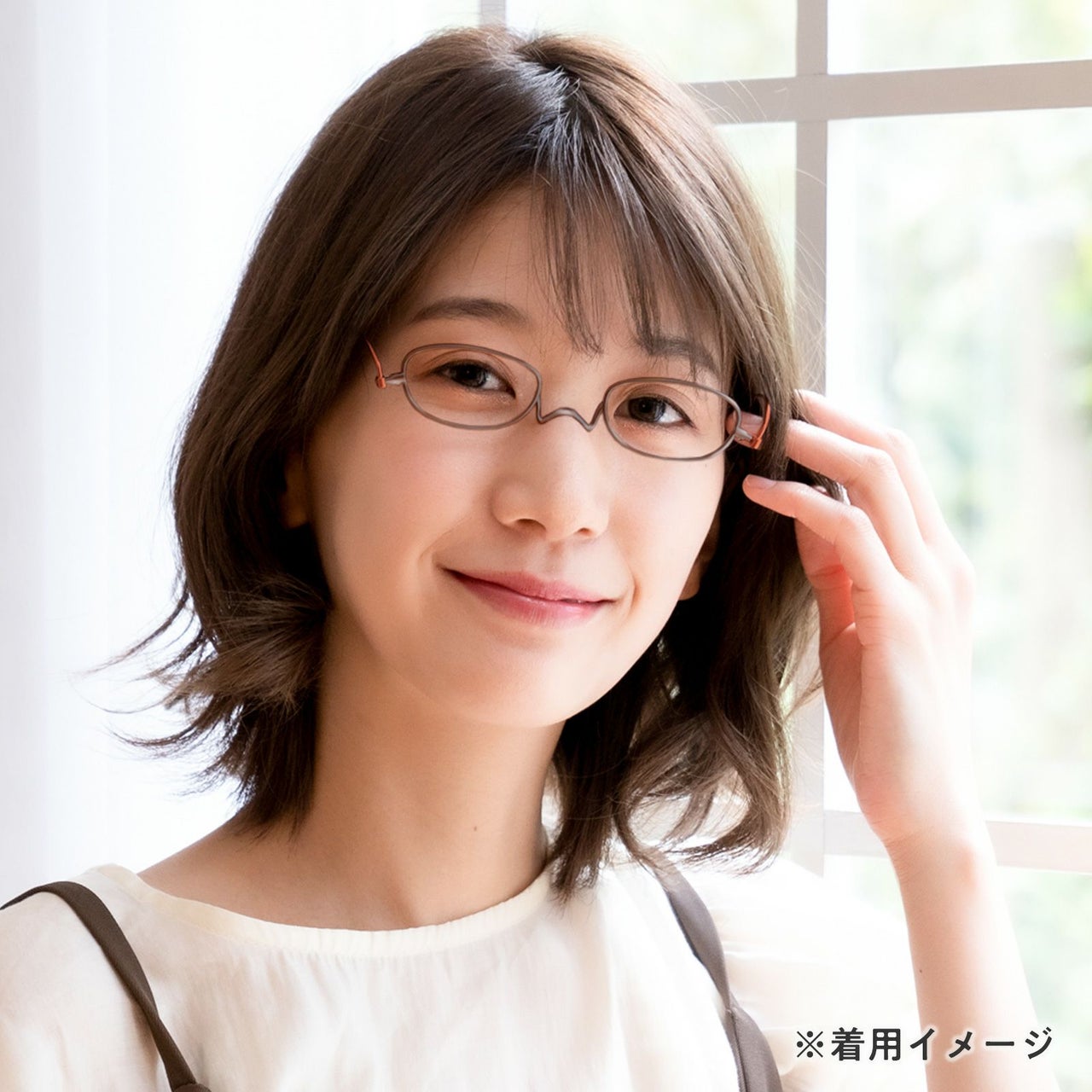 お顔に掛けた時は落ち着いたカラーリングでコーディネートに程よいアクセントをプラス。
