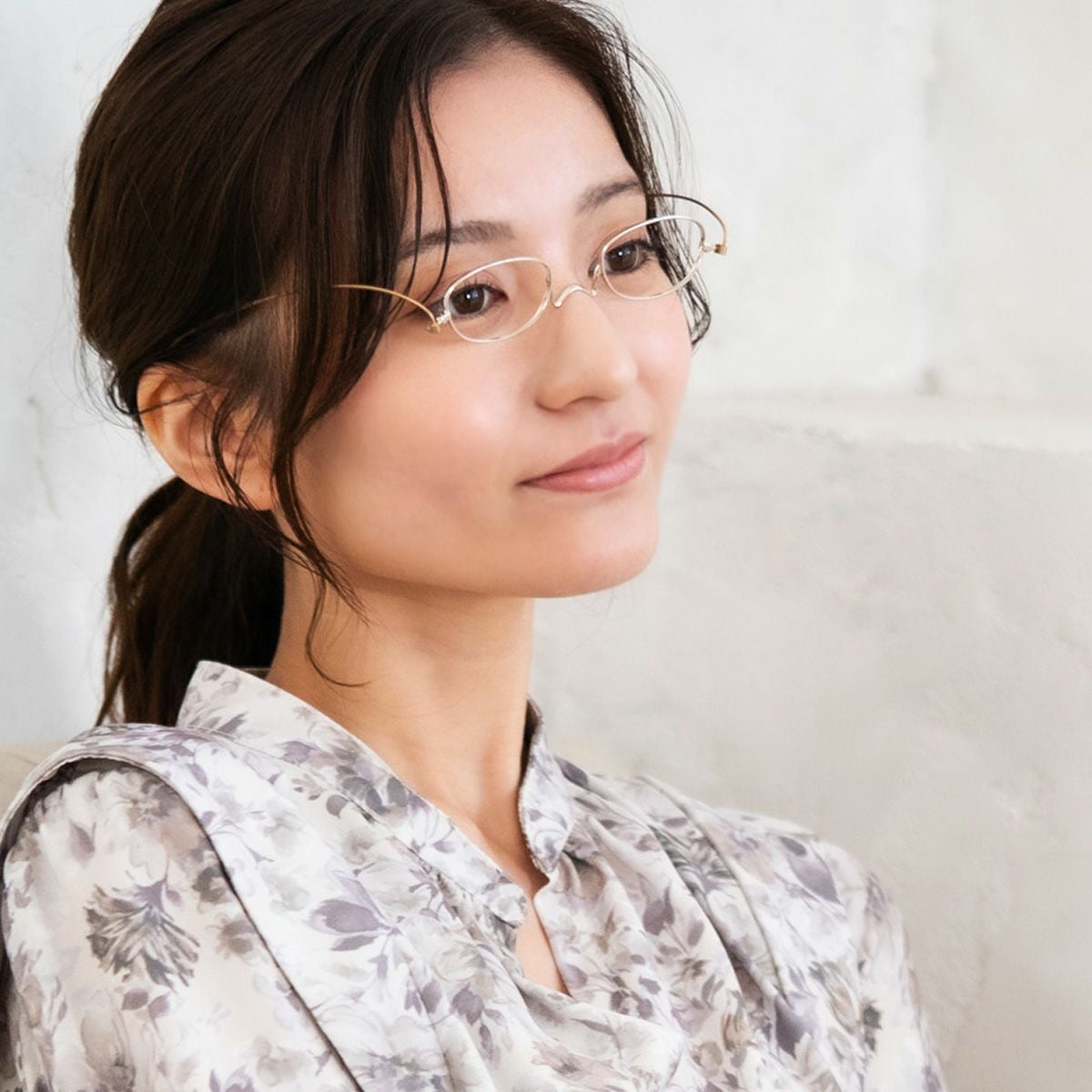 お顔に掛けた時は落ち着いたカラーリングでコーディネートに程よいアクセントをプラス。