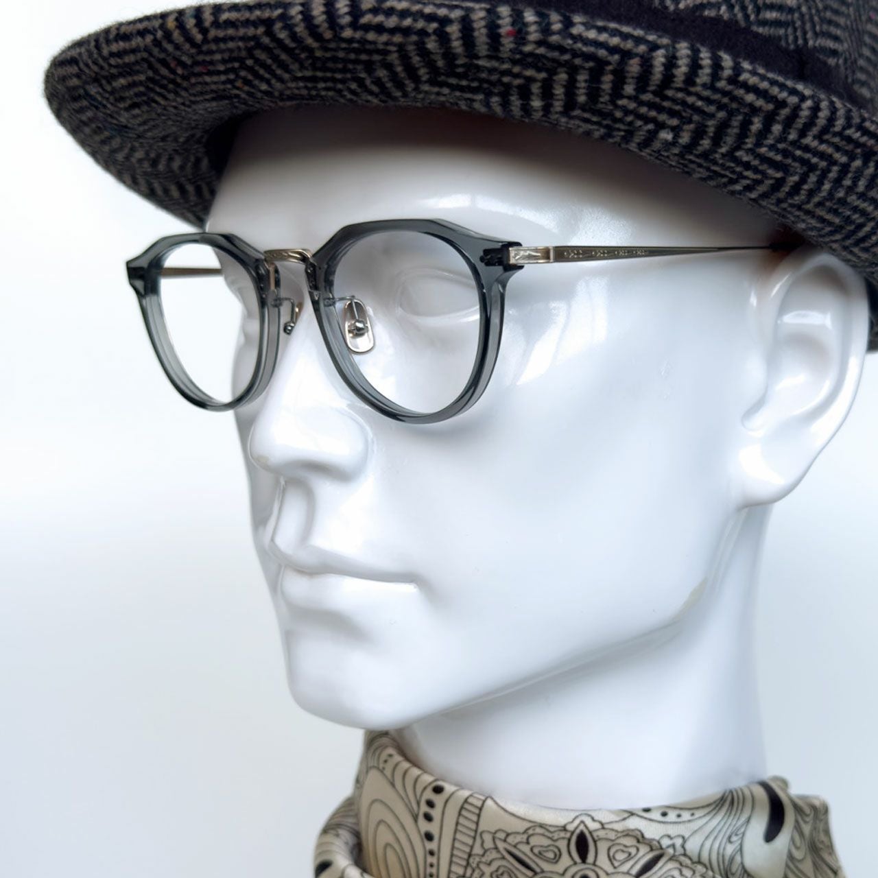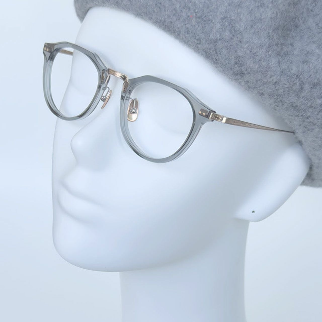 クラウンパントは固い印象だがレンズシェイプを丸くしたことで男女問わず、あえて女性にも掛けてほしい一品。