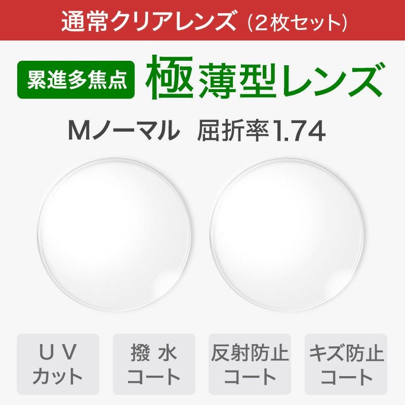 ■屈折率1.74 薄型非球面レンズ ■推奨度数:±5.00〜±9.00以上 ■度付き 乱視対応可 ■遠近・中近・近近両用 専用レンズ